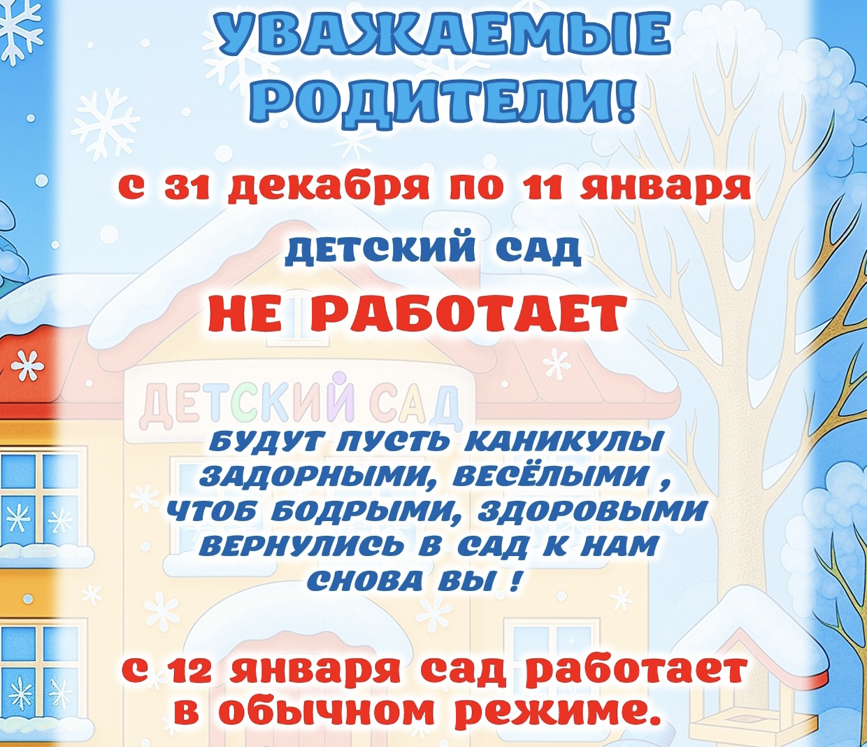 Приветствуем Вас на сайте детского сада! На наших страничках мы постараемся поближе познакомить Вас с детским садом, рассказать об условиях, созданных для наших воспитанников, о наших педагогах, о новостях из жизни детского сада и об основных направлениях нашей деятельности. А если у Вас останутся вопросы – буду рада ответить на них лично. Рады приветствовать Вас на сайте нашего детского сада!