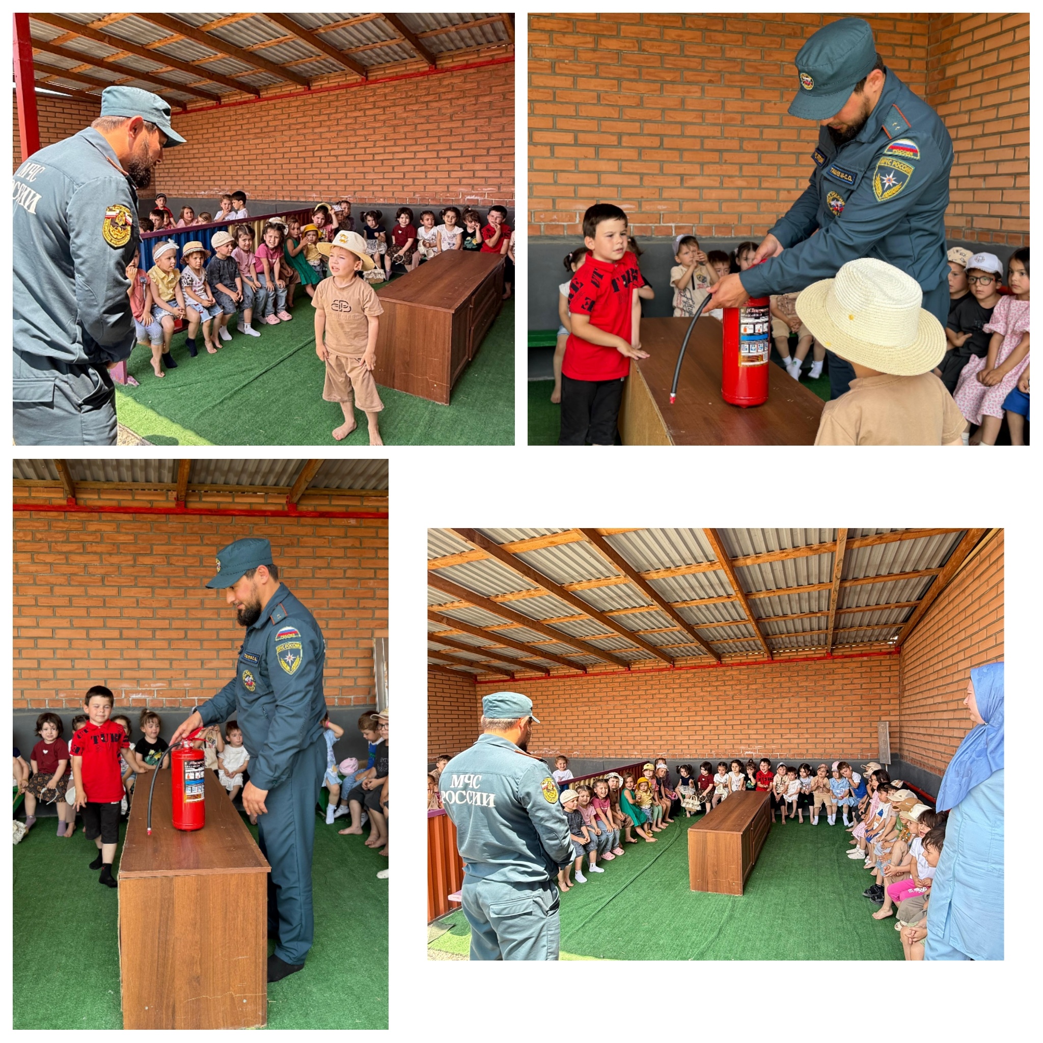 Цель мероприятий – закрепление знаний детей о правилах пожарной безопасности и правилах поведения во время пожара, знакомство детей с профессией пожарного и ее особенностями. В ходе мероприятий прапорщик командир отделения Ташуев Мохьмад-Салах Османович 22 ПСЧ 2 ПСО ФПС ГУ МЧС России по Чеченской Республике подробно рассказал малышам о причинах возникновения пожара и первичных средствах пожаротушения, о том, какие страшные последствия могут возникнуть, если дети возьмут в руки спички.